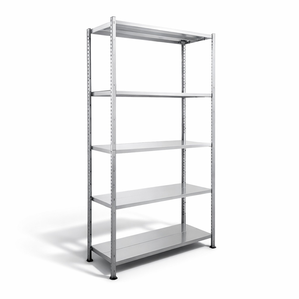 Jednostranná policová zostava s 5 policami je skvelým riešením na usporiadanie a organizáciu Vášho priestoru. S množstvom políc máte dostatok miesta na uskladnenie rôznych predmetov podľa Vašich potrieb. Prednosťou bezskrutkových policových regálov je rýchla montáž, vysoká nosnosť políc, stabilita a dlhá životnosť. Police sa jednoducho montujú bez nutnosti skrutkovania a sú prestaviteľné po 25 mm. Jednotlivé konštrukčné prvky sú vyrobené z pozinkovaného materiálu, ktorý zabezpečuje vysokú odolnosť a trvalú ochranu. Policový regál dodávame s plastovými pätkami pre ochranu vašej podlahy.