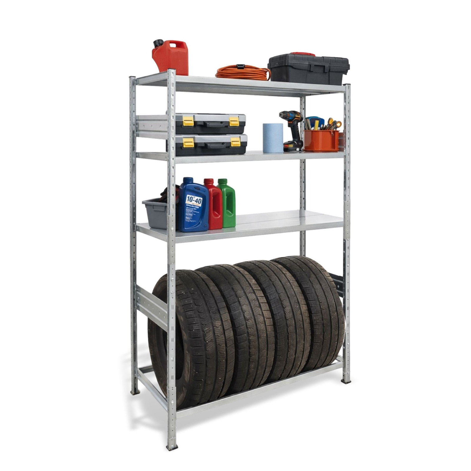 Urobte vo svojej garáži poriadok a získajte viac priestoru s praktickým regálom na pneumatiky. Regál so šírkou 1060 mm je navrhnutý tak, aby spoľahlivo a bezpečne uložil 4 pneumatiky a zároveň vám poskytol ďalší úložný priestor na veci, ktoré v garáži používate každý deň.