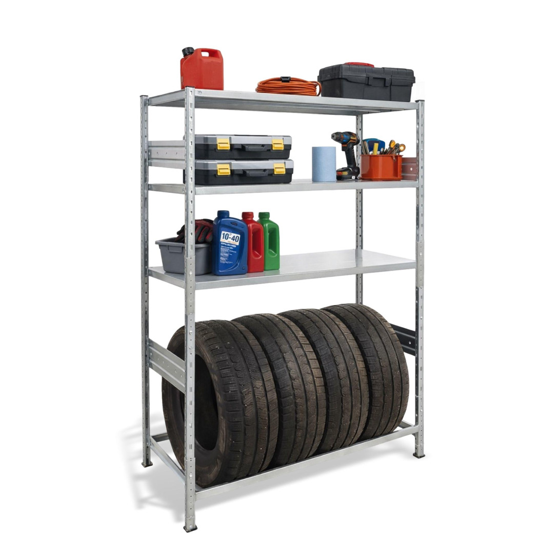 Získajte viac priestoru, poriadku a prehľadu vo svojej garáži s praktickým regálom na pneumatiky. Regál so šírkou 1210 mm je navrhnutý tak, aby bezpečne a stabilne uložil 4 pneumatiky a zároveň vám ponúkol extra miesto na všetko, čo v garáži potrebujete.