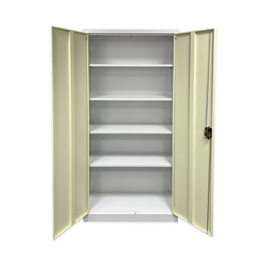 Vnútri skrine sa nachádzajú štyri police s nosnosťou 50 kg, ktoré poskytujú dostatok priestoru na uloženie šanónov, dokumentov, kancelárskych potrieb alebo rôznych administratívnych materiálov. Police sú výškovo nastaviteľné. Obsah skrine je možné bezpečne uzamknúť pomocou cylindrického rozvorového zámku s dvoma kľúčmi.