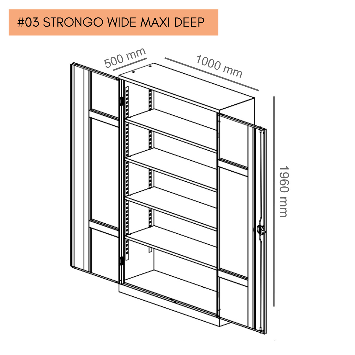 Kancelárska skriňa #03 STRONGO WIDE MAXI DEEP je vyššia a hlbšia, ako ostatné skrine zo série #03 STRONGO. Má univerzálny, klasický dizajn, vďaka čomu sa dokonale hodí do akejkoľvek kancelárie, archívu, domácnosti, alebo skladu. Vďaka svojej extra hĺbke zmestia sa do nej veľkoobjemové krabice, šanóny a dokumenty, ale aj ťažšie kancelárske a domáce potreby. Skriňa má celozváranú konštrukciu, vyrobenú z kvalitného oceľového plechu. Vďaka odolnému vyhotoveniu poskytuje dokonalú bezpečnosť. Obsahuje 4 police s nastaviteľnou výškou, s nosnosťou 80 kg. Skriňa je vybavená veľkoplošným otočným zámkom s dvomi kľúčmi.