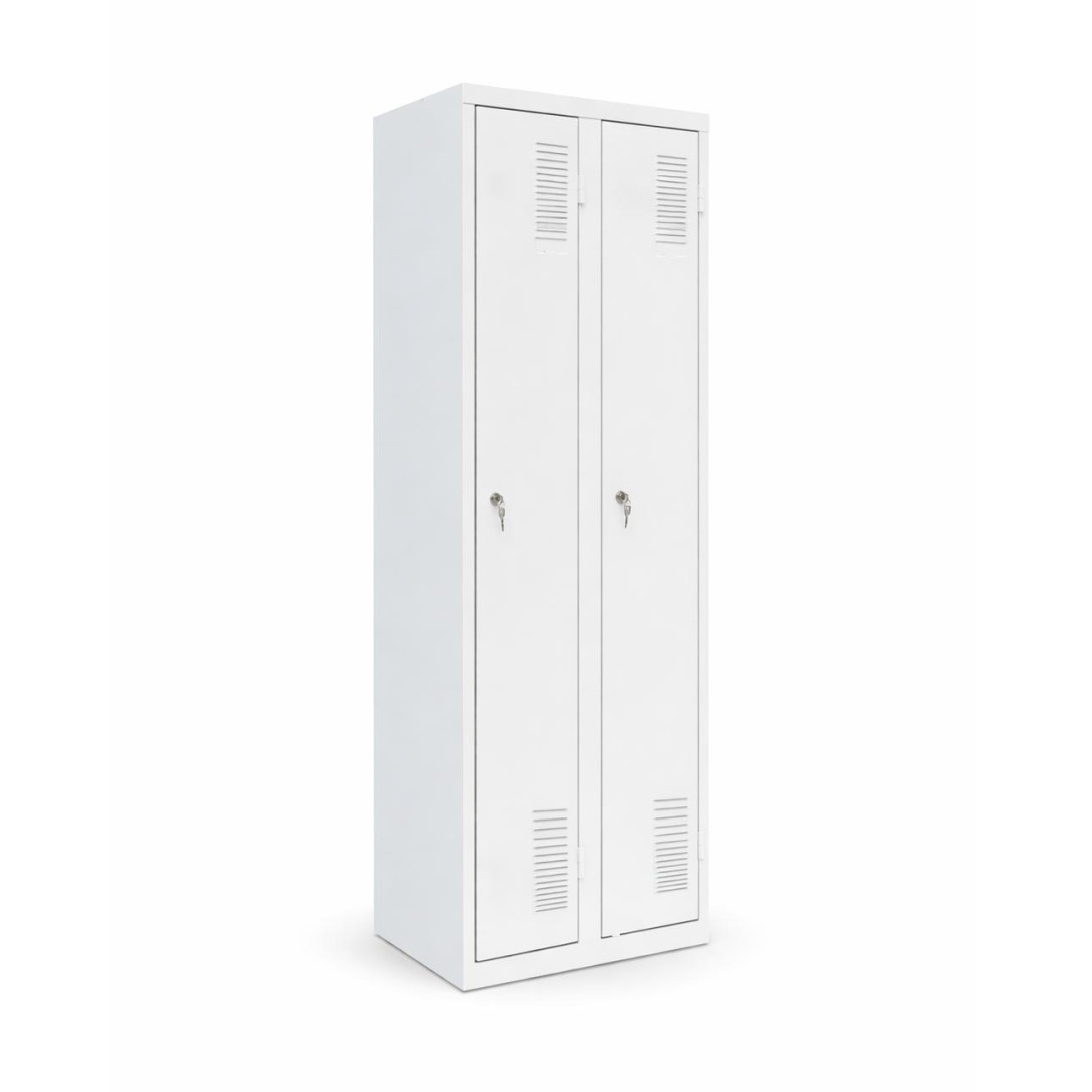 Konštrukcia je pevná a stabilná, navrhnutá na každodenné používanie v náročnejších podmienkach. Dvoje samostatné dvere zabezpečujú oddelený úložný priestor pre dvoch používateľov, pričom každé krídlo je vybavené vetracími otvormi pre prirodzenú cirkuláciu vzduchu. Povrchová úprava v odtieni RAL 7035 / svetlošedá pôsobí neutrálne a profesionálne, vďaka čomu sa skriňa ľahko začlení do rôznych typov interiérov. Svetlošedá farba zároveň opticky presvetľuje priestor a je vhodná do moderných aj klasických šatňových zostáv.