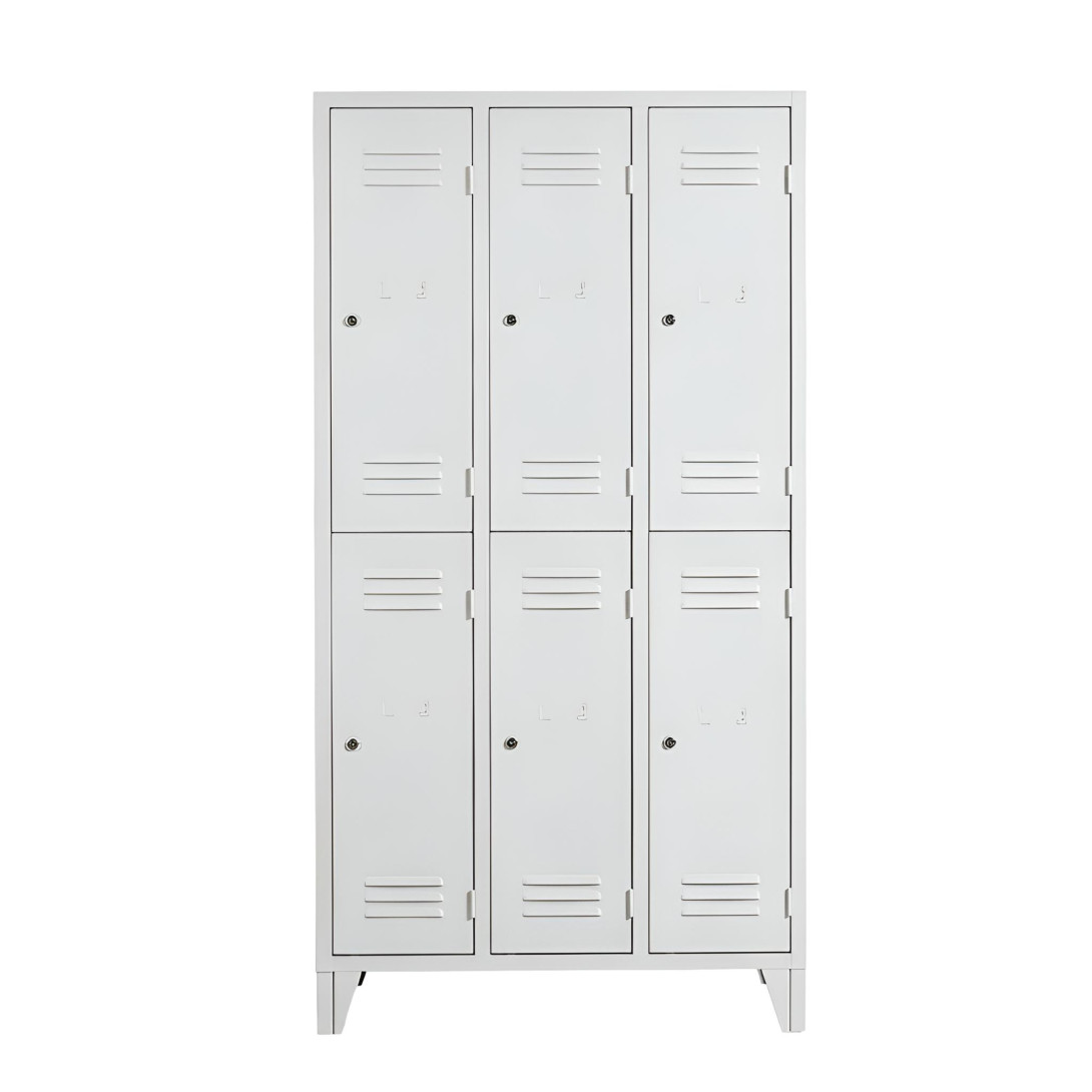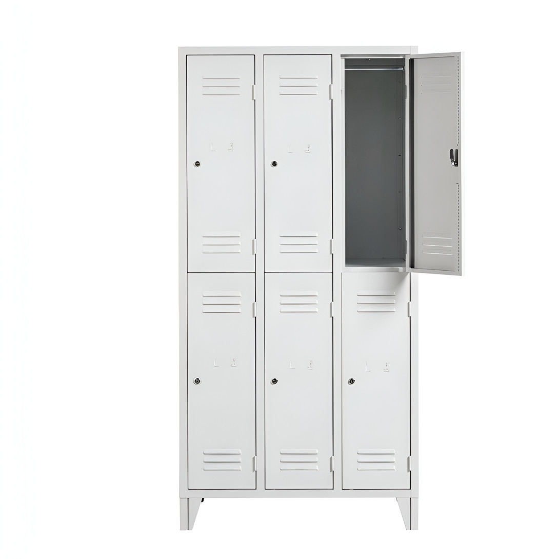 Šatníková skriňa #26 MINI 6 FLAT F je vhodným riešením na uloženie pracovného aj civilného oblečenia v šatniach, firmách, školách alebo športových zariadeniach. Kovová konštrukcia skrine je navrhnutá tak, aby zabezpečila dlhú životnosť a spoľahlivé používanie aj pri každodennej prevádzke.