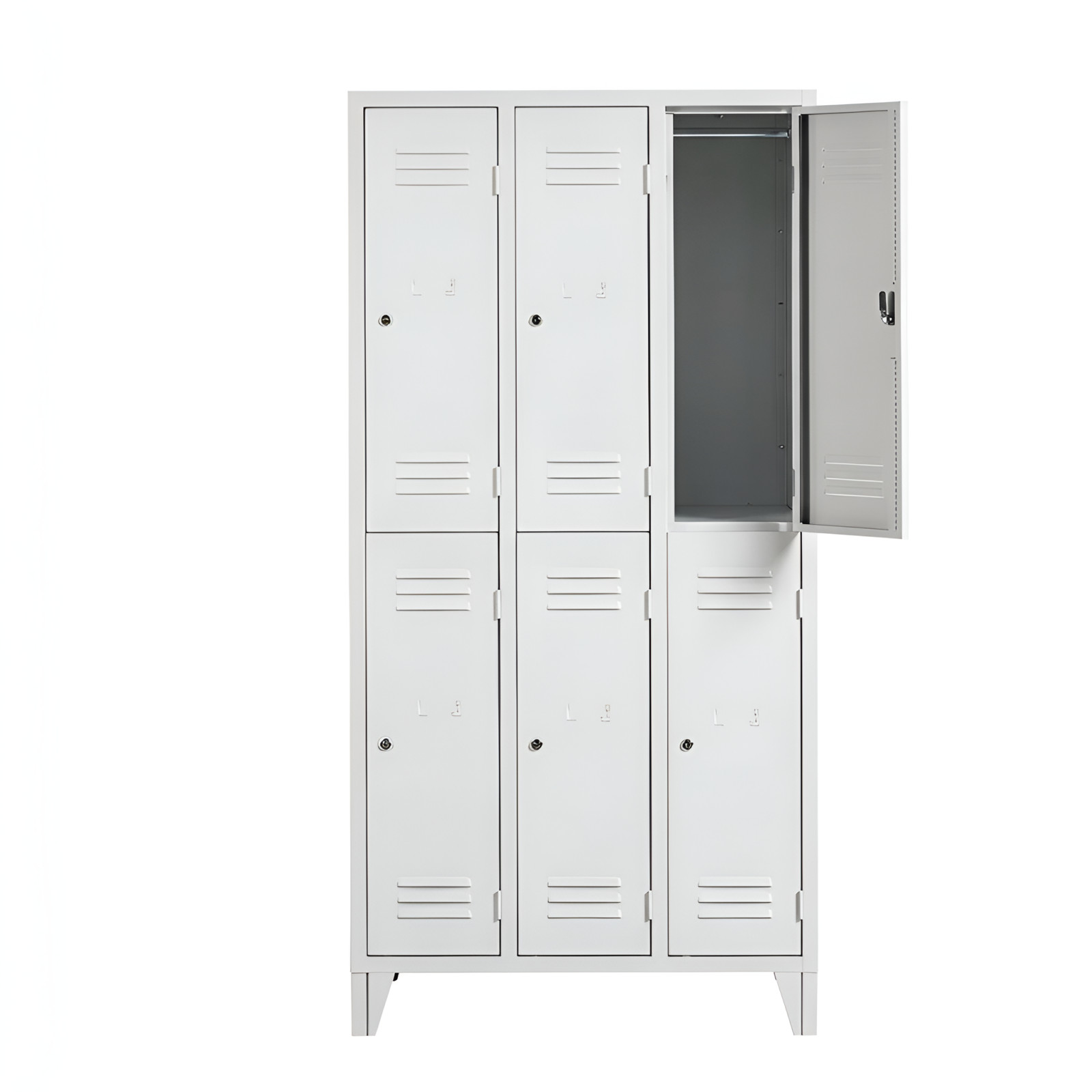 Dvere skrine sú vybavené cylindrickým zámkom, ktorý umožňuje bezpečné uzamknutie a ochranu uložených osobných vecí.