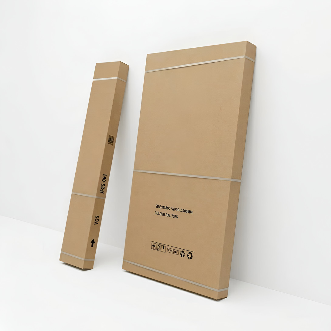 Produkt je dodávaný v demontovanom stave v krabici. Jednotlivé diely je možné jednoducho preniesť aj do priestorov, kde by manipulácia s hotovou skriňou bola náročná – napríklad cez úzke chodby, schodiská alebo dvere. Montáž je jednoduchá a zaberie len niekoľko minút, takže skriňu môžete rýchlo zostaviť priamo na mieste jej používania.