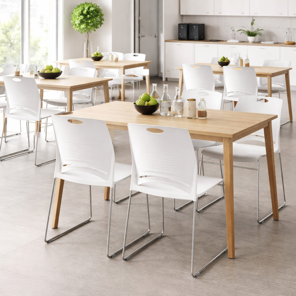 Jednoliaty sedák a operadlo z odolného polypropylénu (PP) zabezpečujú pohodlné sedenie a stabilnú oporu chrbta bez potreby čalúnenia. Vďaka tomu je stolička nenáročná na údržbu, odolná voči opotrebeniu a vhodná aj na intenzívne každodenné používanie. Nosnosť 136 kg garantuje pevnosť, stabilitu a bezpečnosť aj pri pravidelnej záťaži. Hladký, ľahko umývateľný povrch oceníte najmä vo frekventovaných prevádzkach, ako sú jedálne, školské zariadenia či oddychové zóny. Štíhle chrómové nohy podčiarkujú elegantný a nadčasový dizajn a zároveň zabezpečujú spoľahlivú stabilitu pri každodennom používaní.