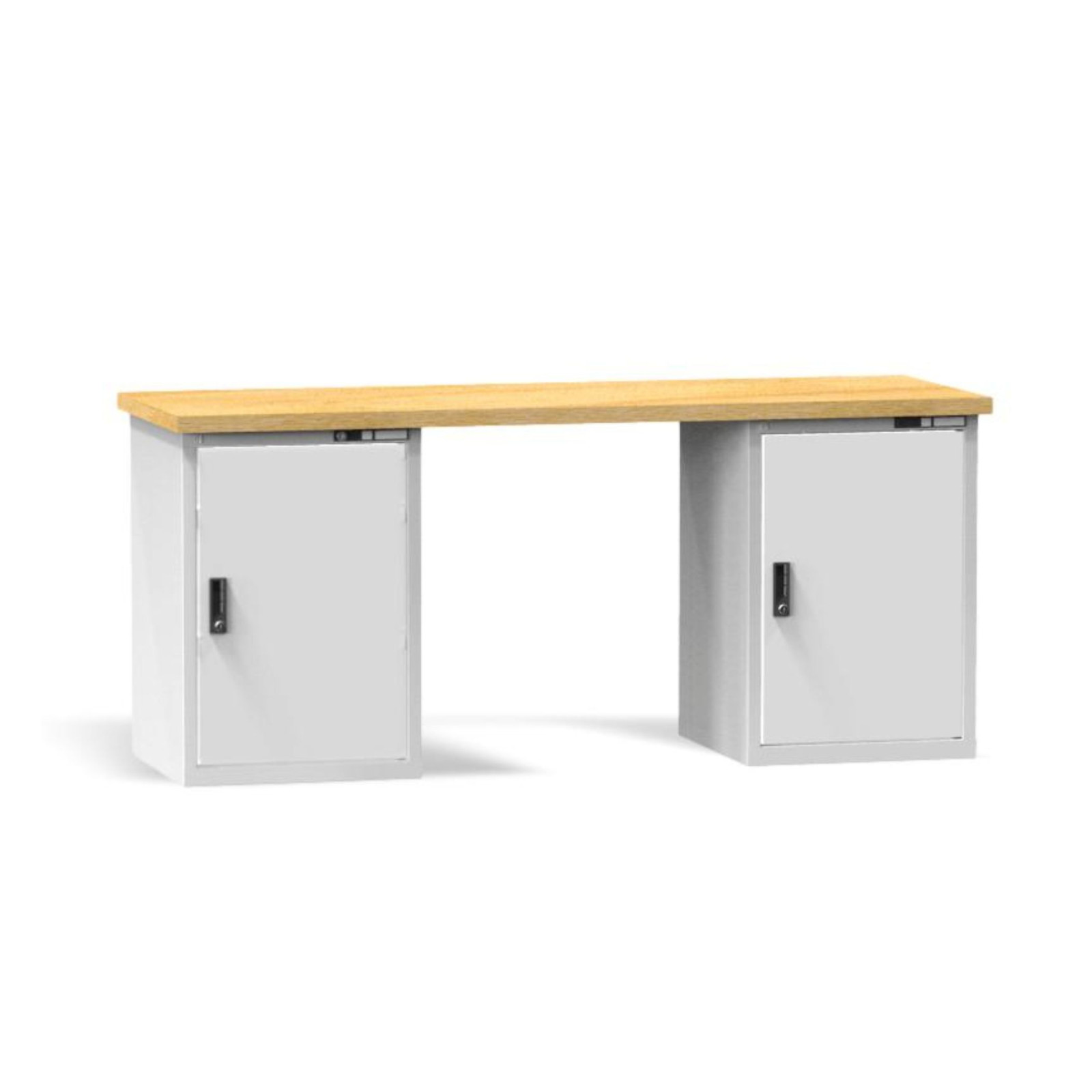Pod pracovnou doskou sa nachádzajú dve uzatvárateľné skrinky, každá s dvomi policami, ktoré ponúkajú veľkorysý úložný priestor na náradie, materiál a príslušenstvo. Všetko má svoje miesto, pracovná plocha zostáva prehľadná a vy sa môžete sústrediť na výkon, nie na hľadanie vecí.