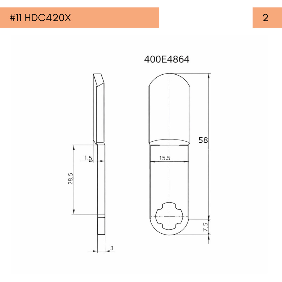 Závorový zámok s tromi závorami #11 HDC420X je vhodný na montáž napr. do šatníkovej skrinky. Dve vyhnuté závory sú najčastejšie používané závory. Zámok je dodávaný s rôznymi kombináciami kľúča, 1 zámok s 2 kľúčmi. Zámok je dodávaný v nastavení 180 SA N, upevňovacia matica je súčasťou. Zámok je dodávaný len v rôznych kombináciách.